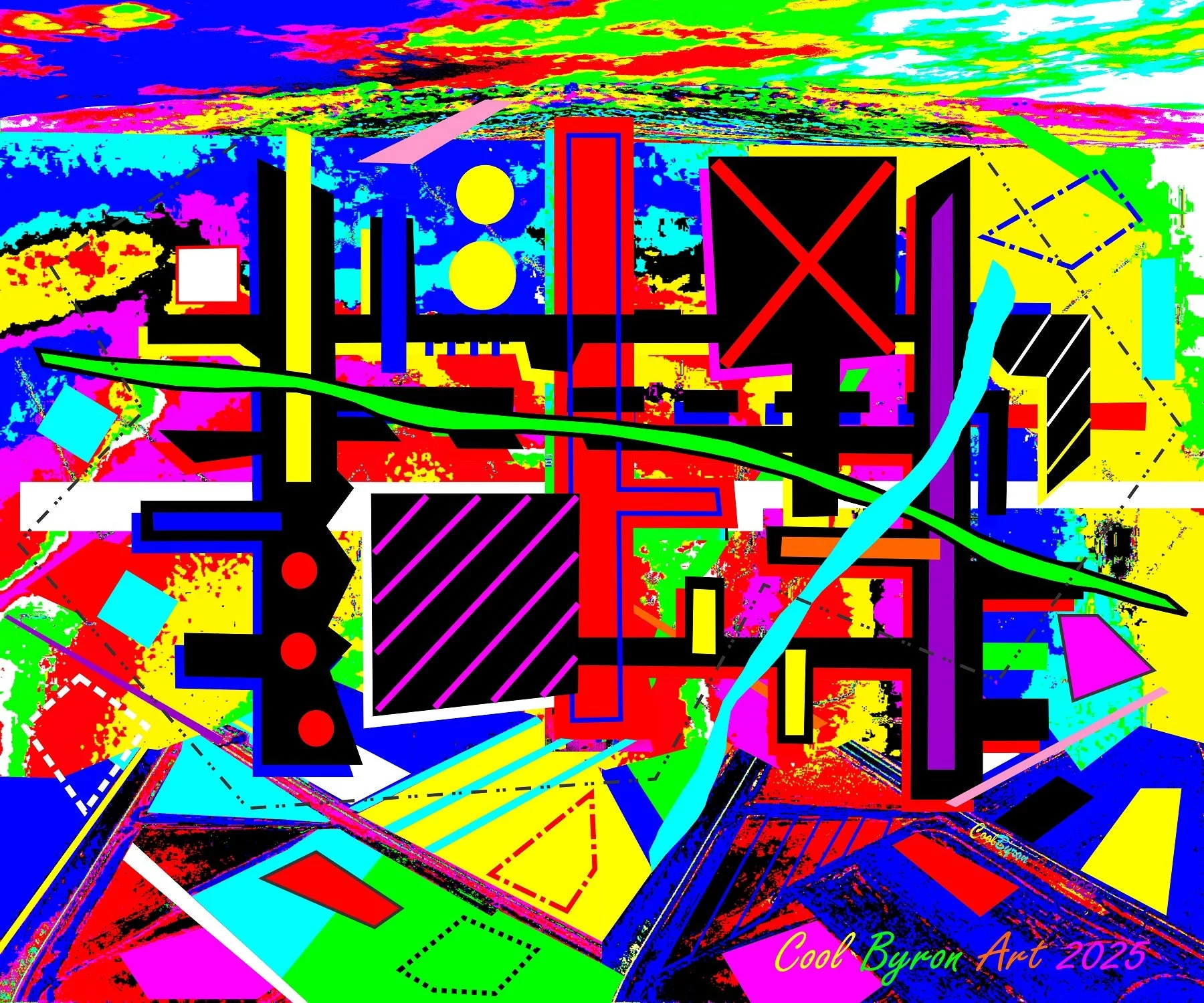 Encountering COOLBYRON’s Technoexpressionism feels like standing in the aftermath of an explosion and realizing the fragments are still breathing. These works—dense with geometry, delirious with color—refuse hierarchy, coherence, and restraint. Each line is an argument; each hue, a protest.